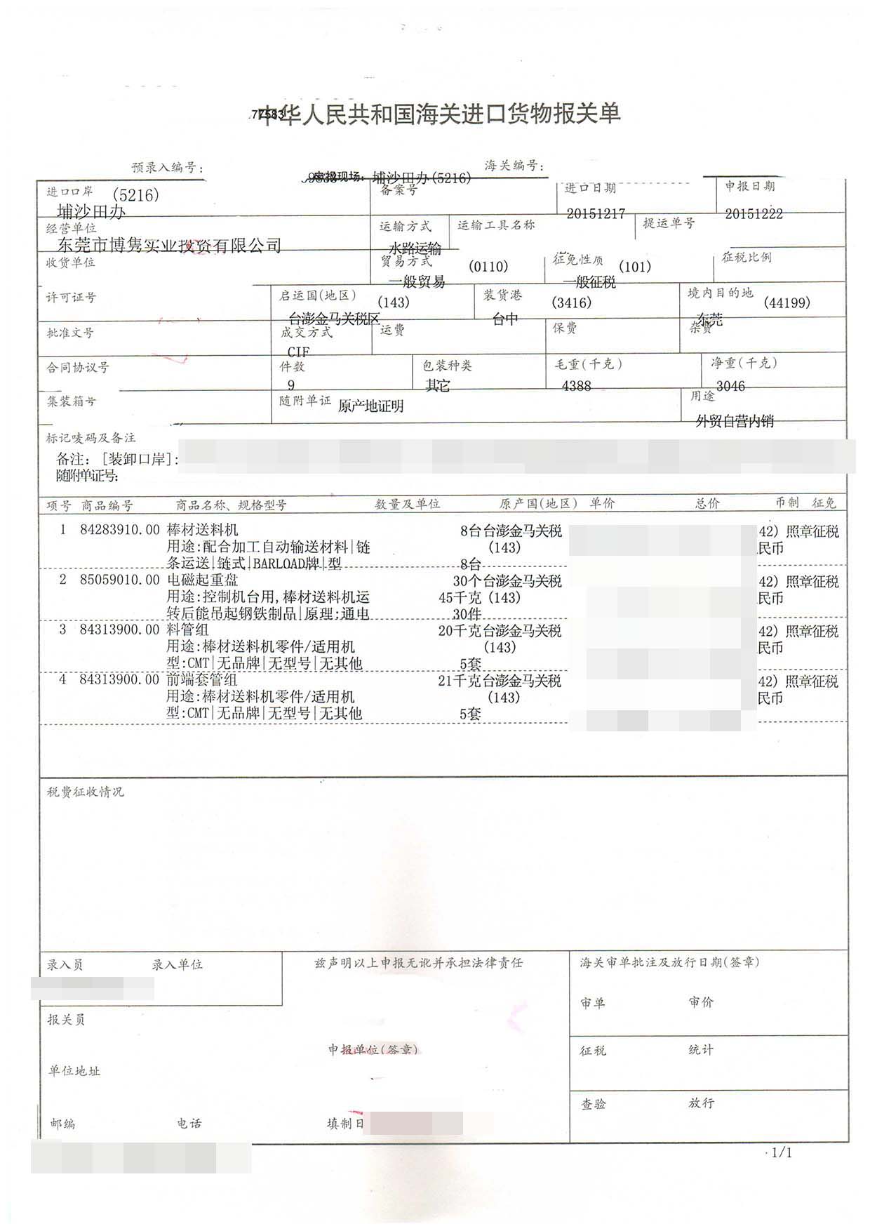 一般我們所說的自動棒材送料機是指數控車床用的油浴送料機。油浴送料機是送料機的一種新產品,相比于以上二種送料機具有送料直徑范圍廣(一般為ф3~ф42mm或更大)、送料長度長(一般為3米以內)、操作方便、穩定性好、低噪音、棒料無磨損、運行故障少、使用壽命長、價格適中等優點,特別適合高轉速、長棒料、精密工件的加工,因此成為數控車床配套較多的送料機。我司擁有豐富的棒材送料機進口報關手續流程及案例,現在為大家詳細介紹一下關于棒材送料機進口報關那些事兒!