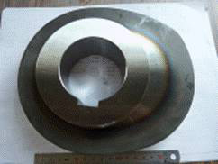 上面圖片中的凸輪為冷鍛機轉(zhuǎn)動軸上的一個零件,冷段機將電機動力傳動至齒輪,齒輪轉(zhuǎn)動時帶動安裝在轉(zhuǎn)動軸上的凸輪,當凸輪轉(zhuǎn)到高位時將動力傳遞到推動桿上用來將產(chǎn)品頂(通)出。